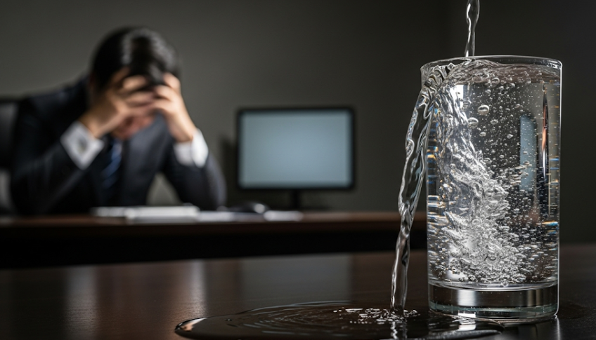 日々の仕事のプレッシャーや人間関係の悩み、プライベートの問題など、様々なストレスが少しずつコップに注がれていきます。