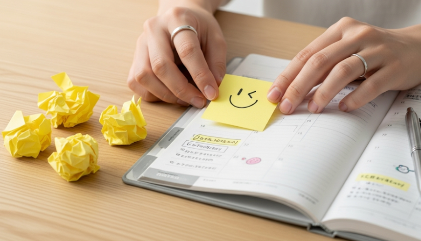 たとえ目標が達成できなかった日があったとしても、「目標達成のために時間を作ろうとした」「苦手なことに取り組もうとした」という、行動を起こそうとした自分自身の意志を認め、労ってあげましょう。