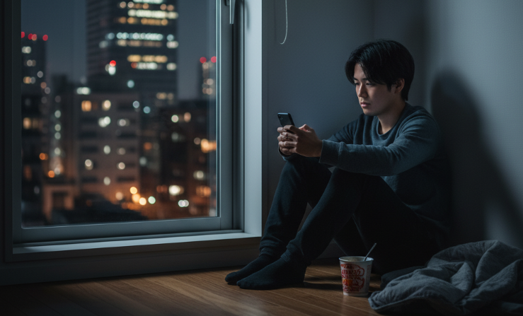 - 人間関係で孤立するケース:新しい環境に馴染めず、友人が一人もできないまま休日を過ごすことが多くなるケース。地元の友人たちが結婚したり、集まったりしている様子をSNSで見て、「自分だけが取り残されている」と孤独感を深め、後悔する。